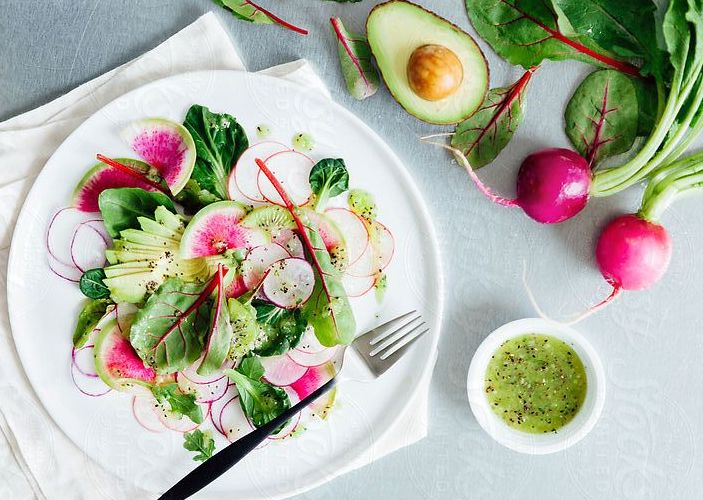 Verdure a piacere, crude, cotte, grigliate, al forno, condite con olio extra vergine di oliva, un pizzico di sale integrale o rosa con pesce, carne.