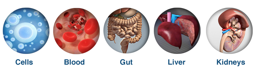 – Endotossine: prodotte dal nostro organismo, potenzialmente pericolose, includono tossine prodotte dai batteri intestinali, da sotto prodotti del metabolismo epatico non adeguatamente trasformati, accumulo di ammoniaca per un’inadeguata funzione renale.