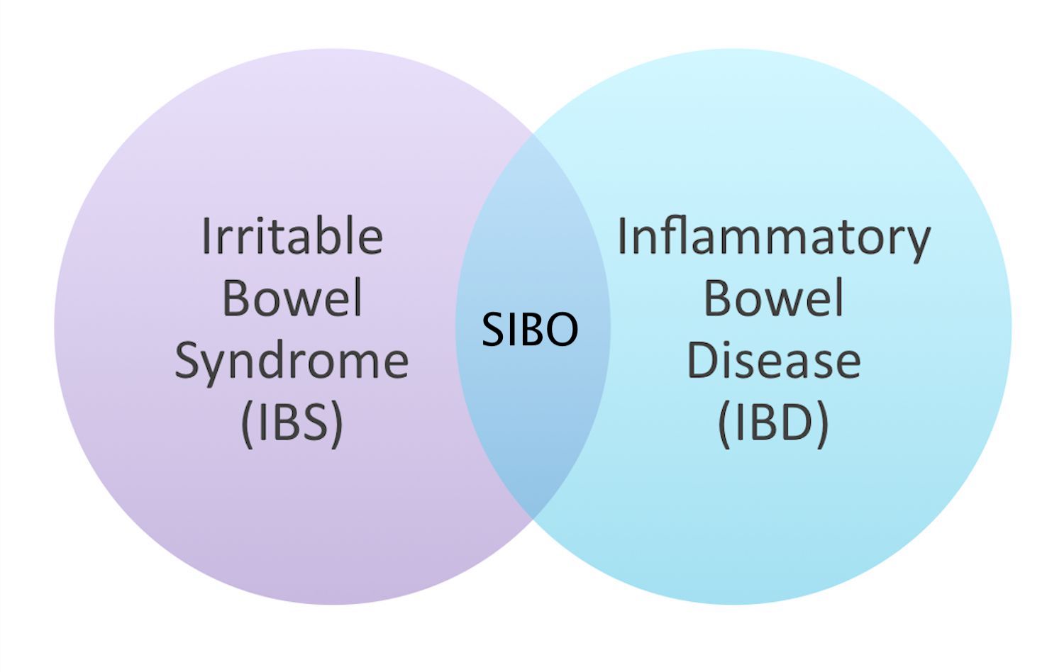 Come nell’immagine che vedete in testa all’articolo tra IBS e IBD c’è una correlazione e a volte coesistenza, tra l’intersezione delle due si inserisce la SIBO.